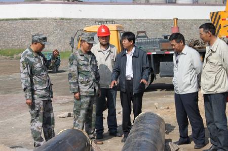 2014年公司領(lǐng)導(dǎo)現(xiàn)場(chǎng)指導(dǎo)為部隊(duì)暖氣管道的安裝工作