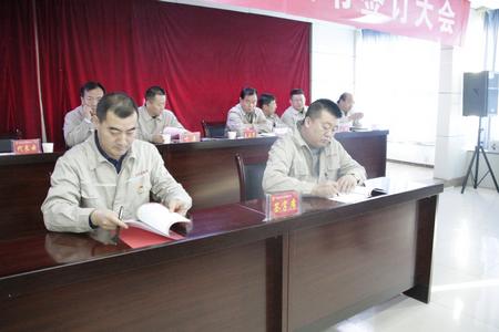 會上,集團公司董事長代良云與集團公司各主管領(lǐng)導(dǎo),各主管領(lǐng)導(dǎo)與分管部門負責人相繼簽訂了2018年經(jīng)營管理、職能管理、安全環(huán)保管理目標責任書,各級管理人員分別簽訂了《依法遵章、廉潔履職承諾書》。